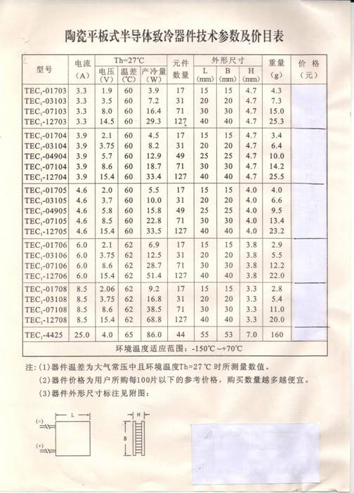 TEC系列半導體致冷組件有什么規(guī)格,參數(shù)如何?