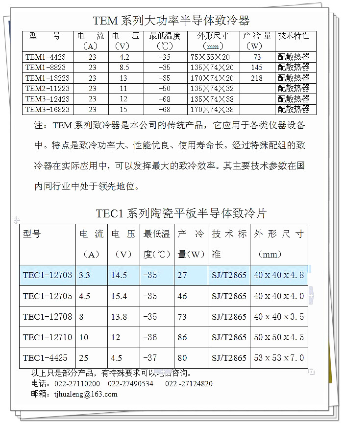 TEM 系列半導(dǎo)體致冷器2016-09-26